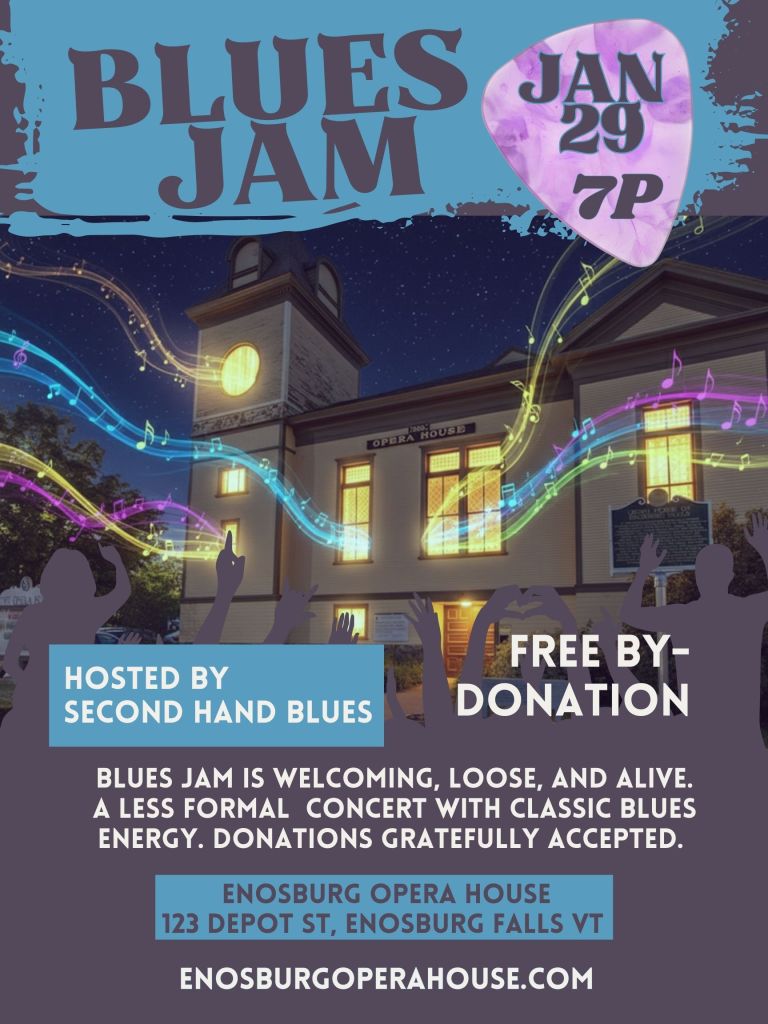 A soulful evening of live blues music. This free, by-donation Blues Jam is welcoming, loose, and alive, a less formal concert with classic blues energy. Donations gratefully accepted.