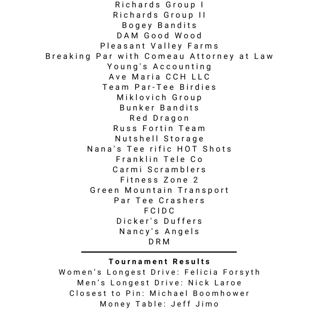 Our next tournament will be in 2027! Check out our photos & sponsors from our 2025 tournament below.