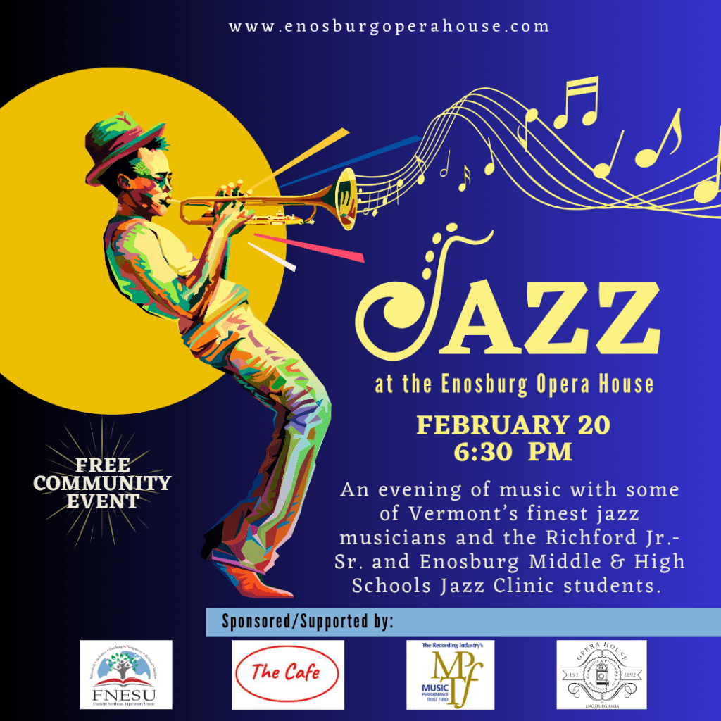 An evening of music with some of Vermont’s finest jazz musicians and the Richford Jr.-Sr. and Enosburg Middle & High Schools Jazz Clinic students.